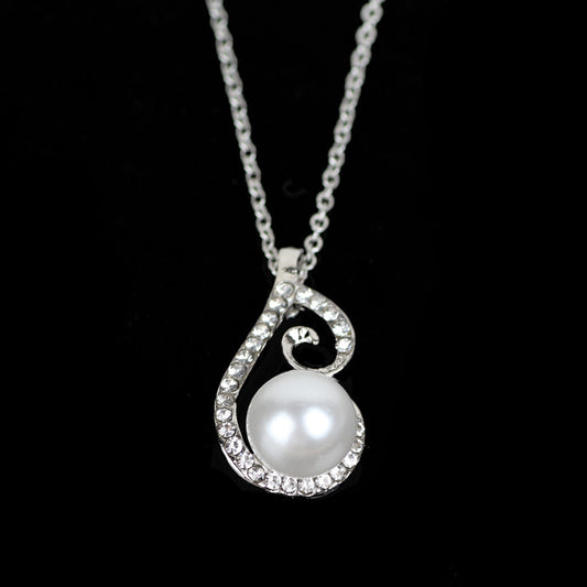 Rhinestone Diamond Pearl Drop Two Necklace Jewelry Set