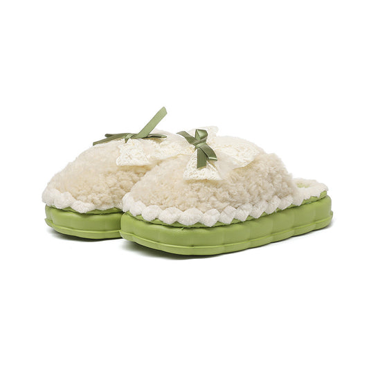 Cotton Slippers Women's Autumn And Winter Non-slip Bow