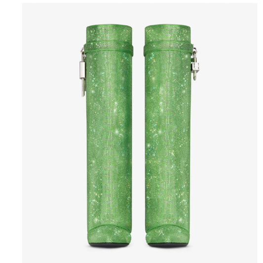 Round Toe Wedge Super High Heel Plus Rhinestone Lock Shark Buckle Knee-high Boots