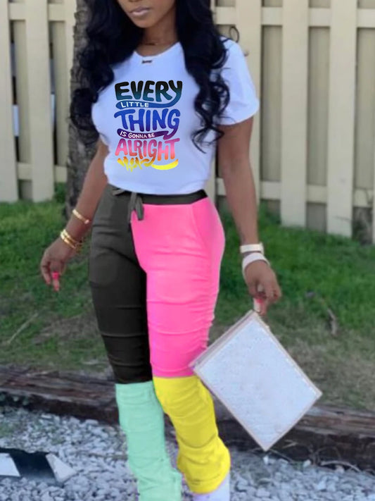 Two Piece Set Gradient Letter Print Drawstring Pants Set