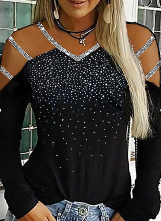 V-Neck Rhinestone Long Sleeve Multicolor Women