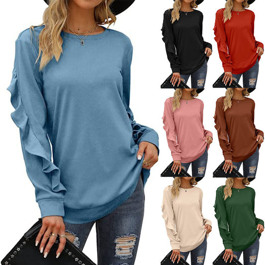 Women's Clothing Casual Round Neck Sweater Pleated Long Sleeve Top