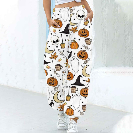 Women's Fashion Loose Halloween Funny Print Ankle Banded Pants