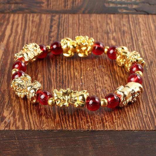 Yellow Stone Vintage 3D Red Garnet Beads Bracelet