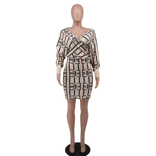 Fashion Deep V Neck Hip Dress Long Sleeve Dress