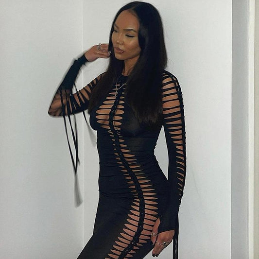 Women's Hollow-out Long-sleeved Dress