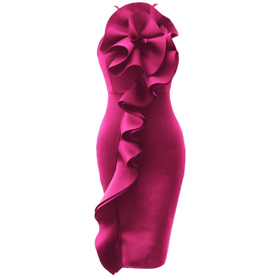 Sequin Backless Padded Shoulder Bubble Sleeve Party Dresses For Women