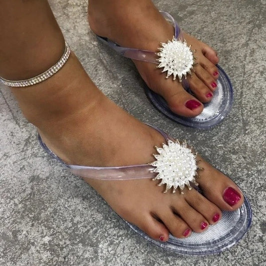 Ladies summer pearl flower flip-flops