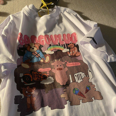 Fashion Girl Print Ladies Short Sleeve Loose T-shirt