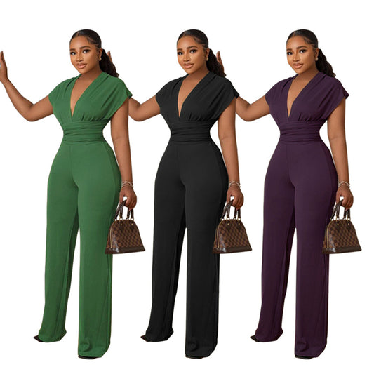 Women's Fashionable Short-sleeved V-neck Jumpsuit