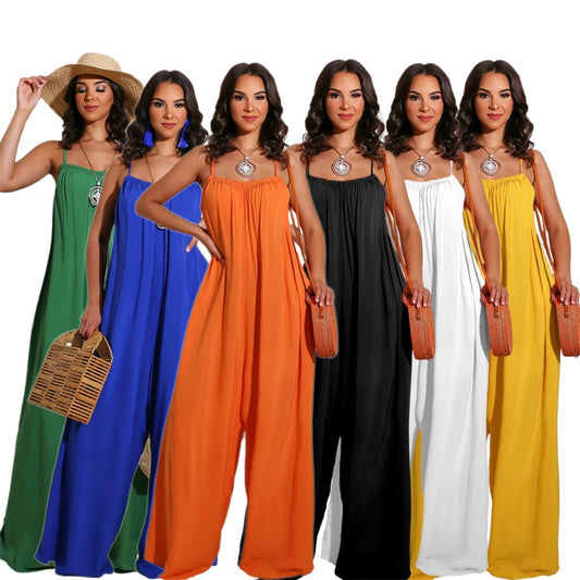Solid Color Casual Sling Women's Jumpsuit