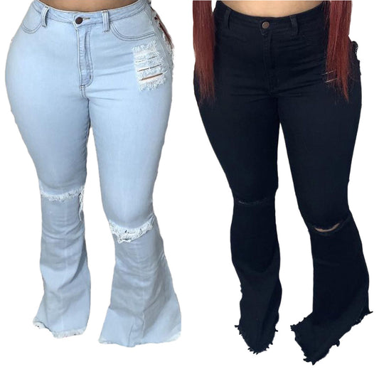 Trendy Unique Jeans Stretch Bell-bottom Pants