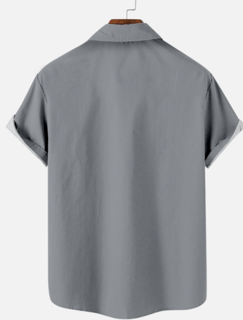 Lapel Button Cotton And Linen Printed Men's Shirt
