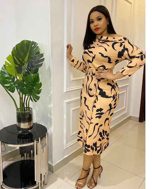 Women's Round Neck Long Sleeve Printed Temperament Dress