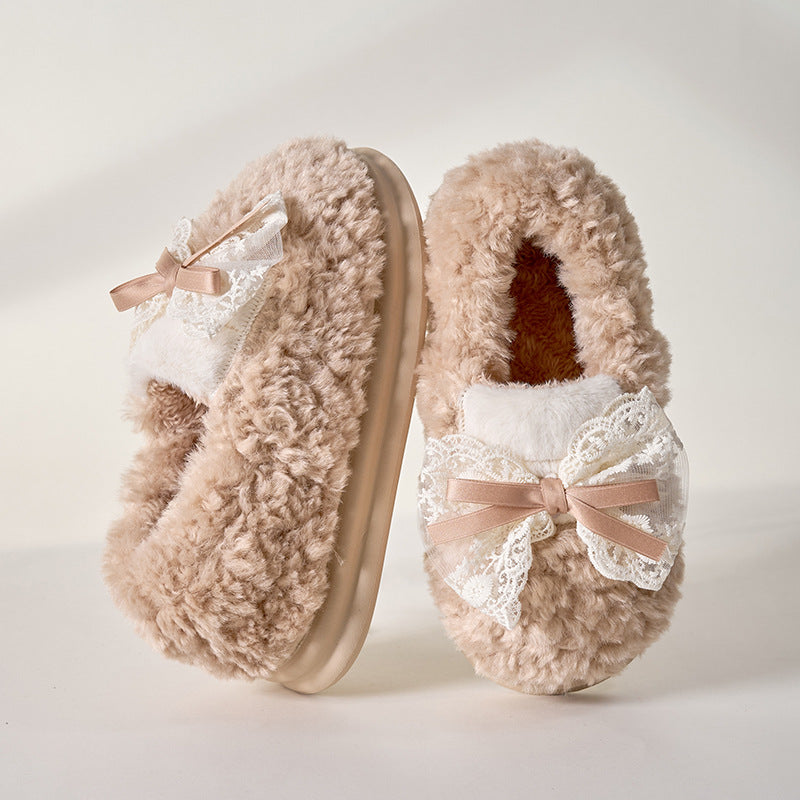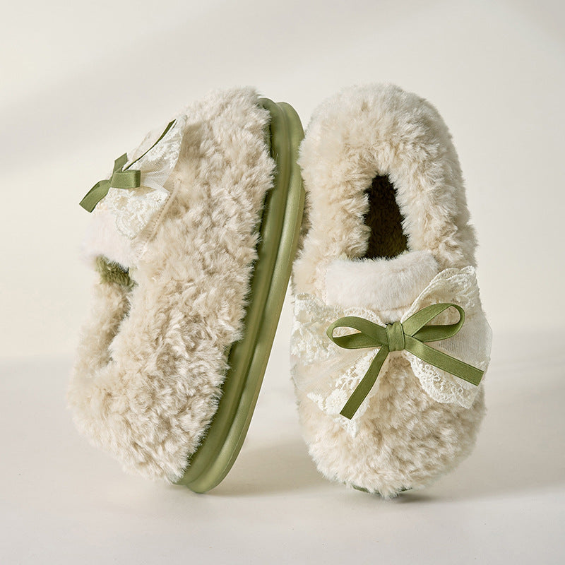 Cotton Slippers Women's Autumn And Winter Non-slip Bow