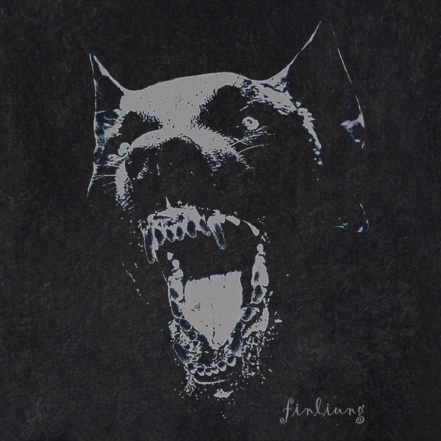 Doberman Pinscher Printed Wash Retro Round Neck Short Sleeves T-shirt