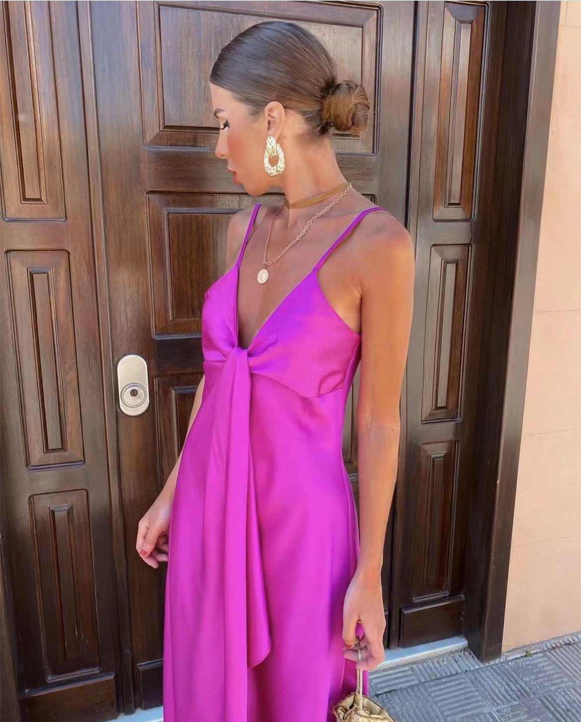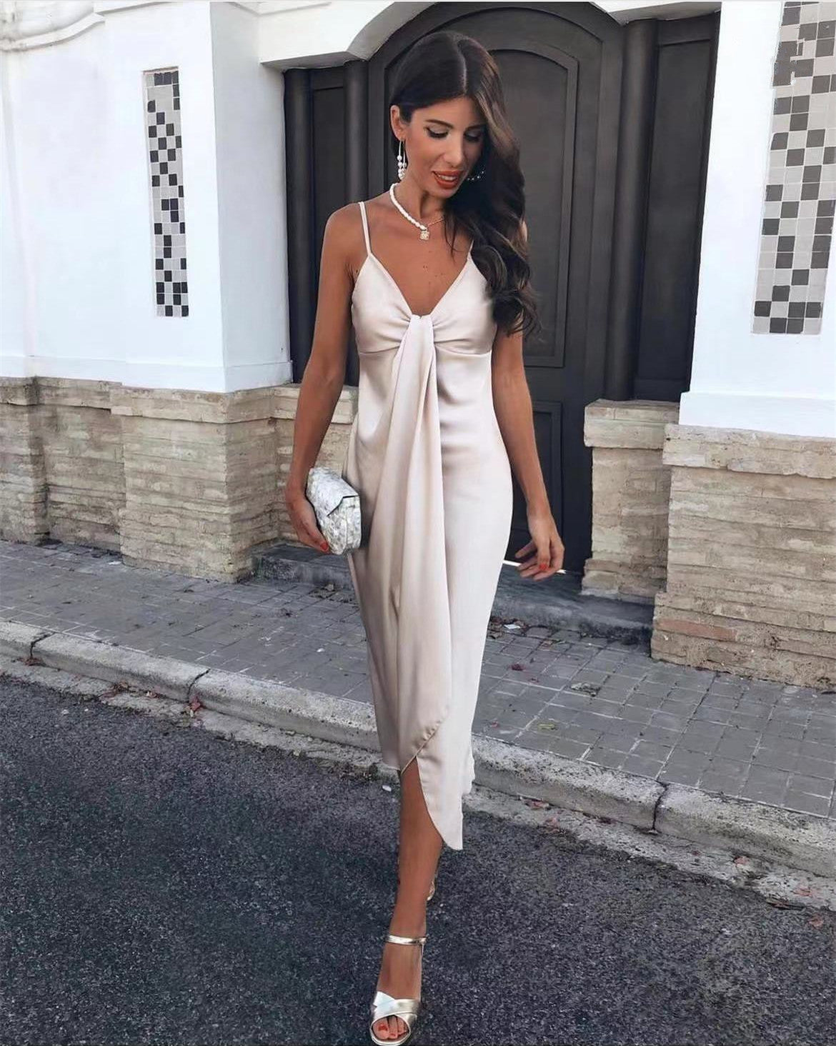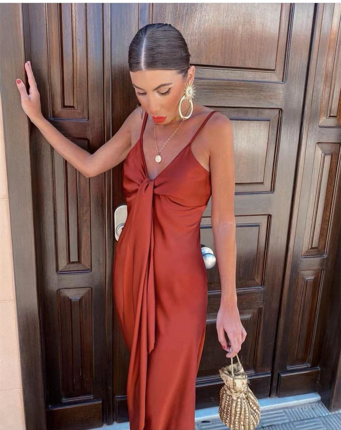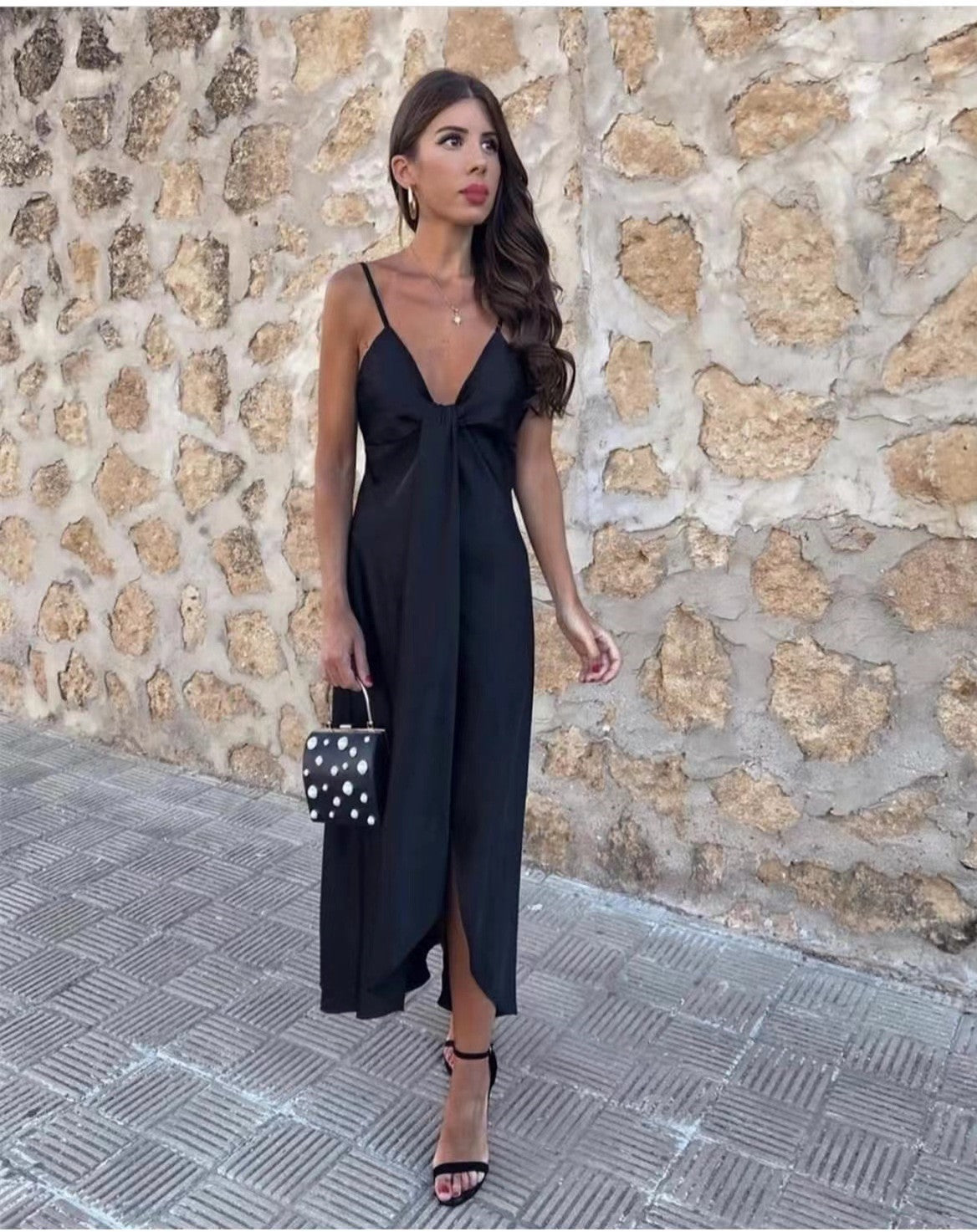 V-neck Split Irregular Spaghetti-strap Dress For Women