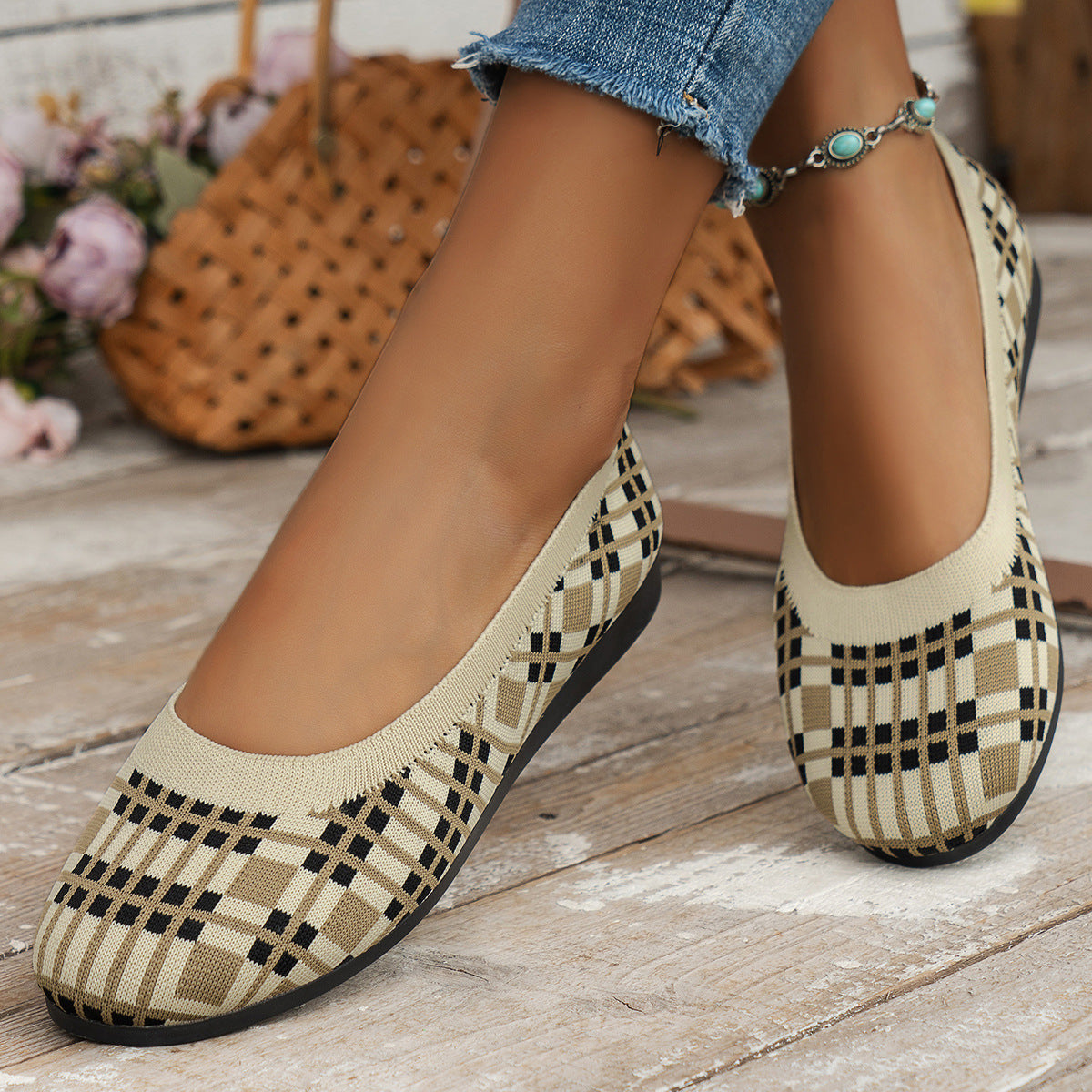 Plaid Print Casual Breathable Slip On Round-toe Mesh Shoes