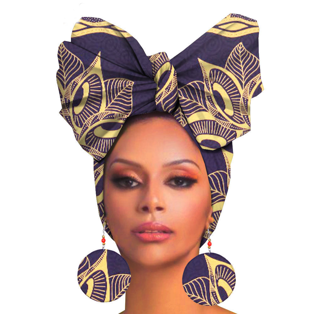 Fashion Printed Cotton Turban Exaggerated Earrings