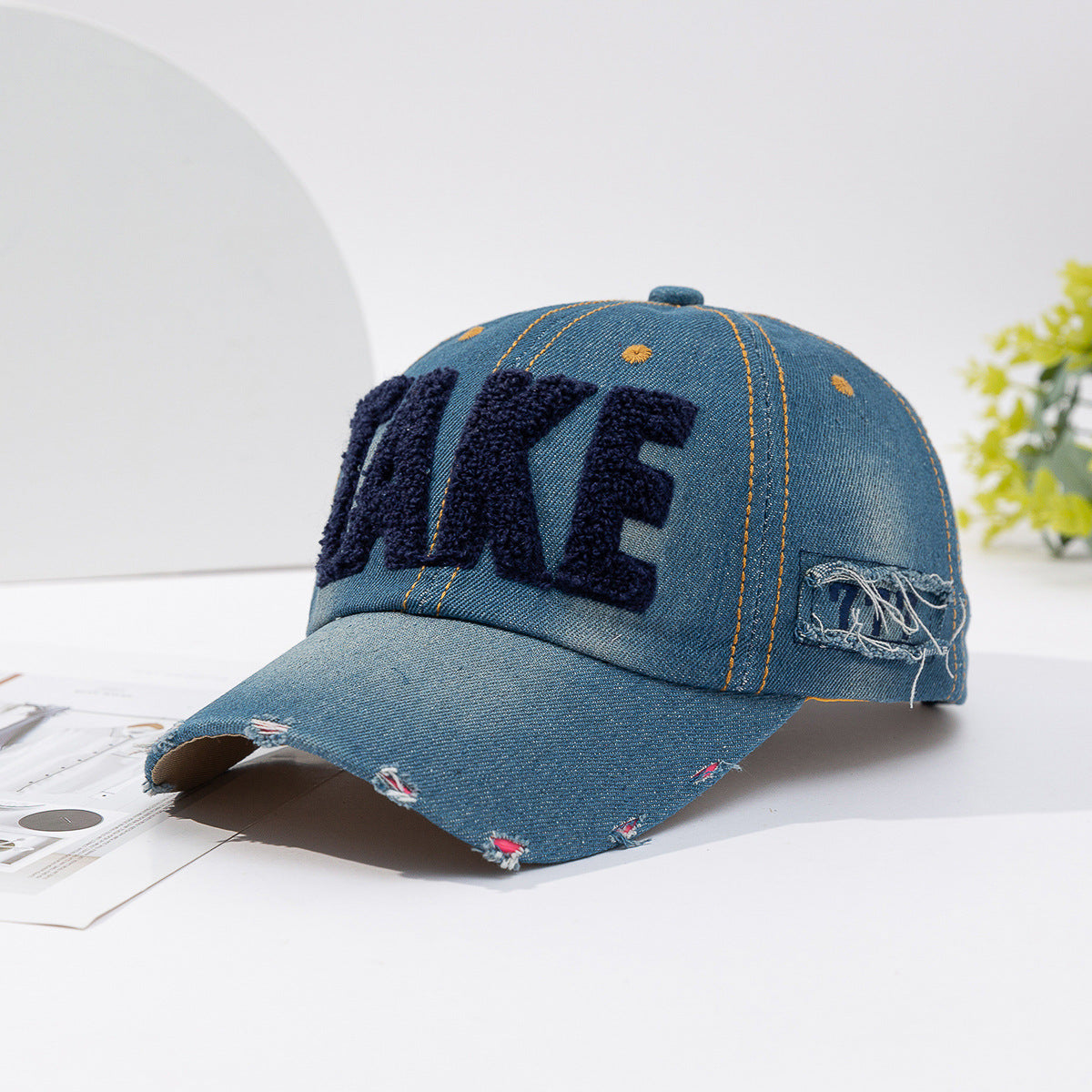 Three-dimensional Embroidered Ripped Letter-printing Denim Baseball Cap