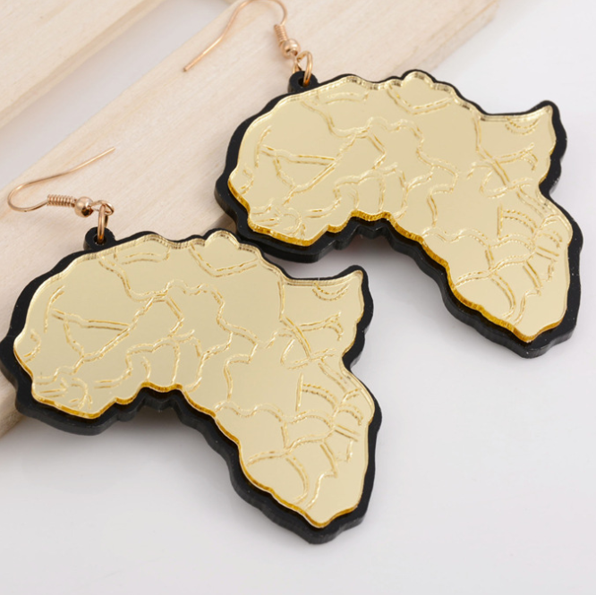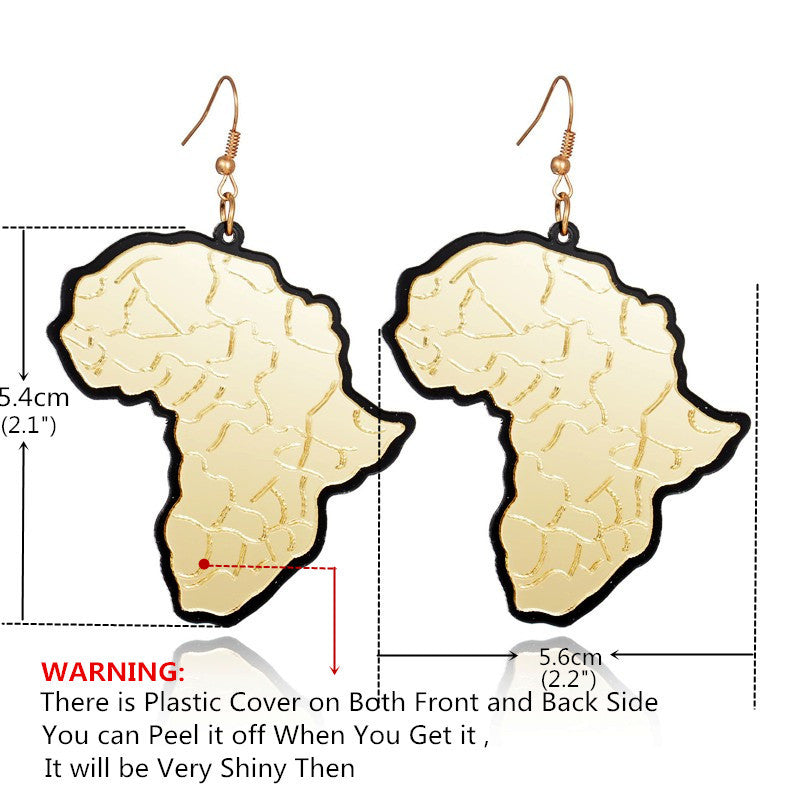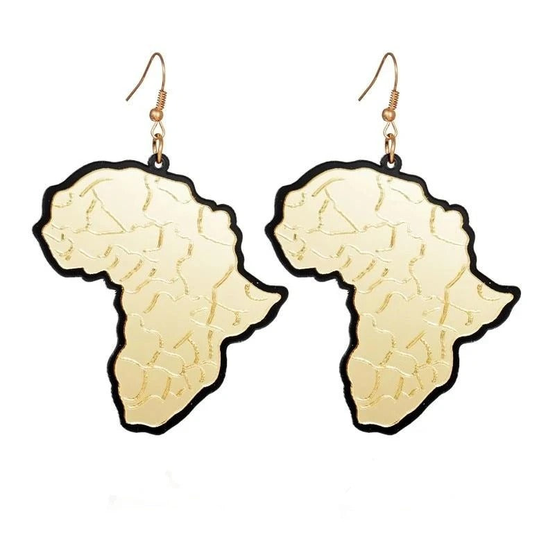 Golden Africa map pendant Earrings