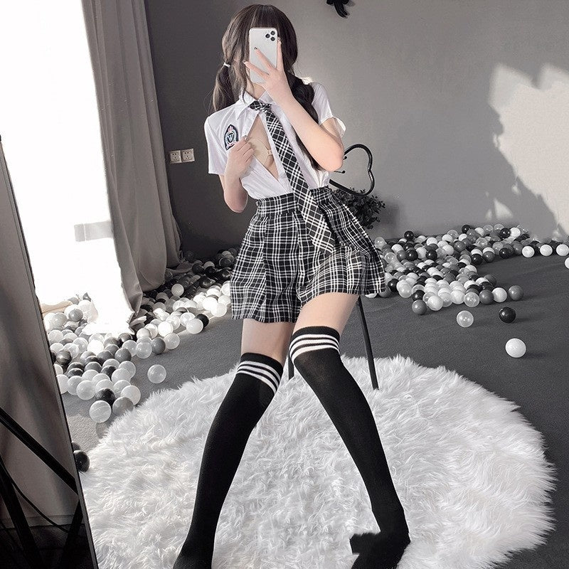 Top * 1pc+tie * 1pc+pleated skirt * 1pc+T pants * 1pc Or Top * 1pc+tie * 1pc+pleated skirt * 1pc+T pants * 1pc+stockings * 1Pair