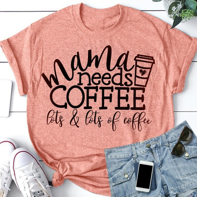 Letter Print Loose Round Neck Short Sleeve T-shirt Women