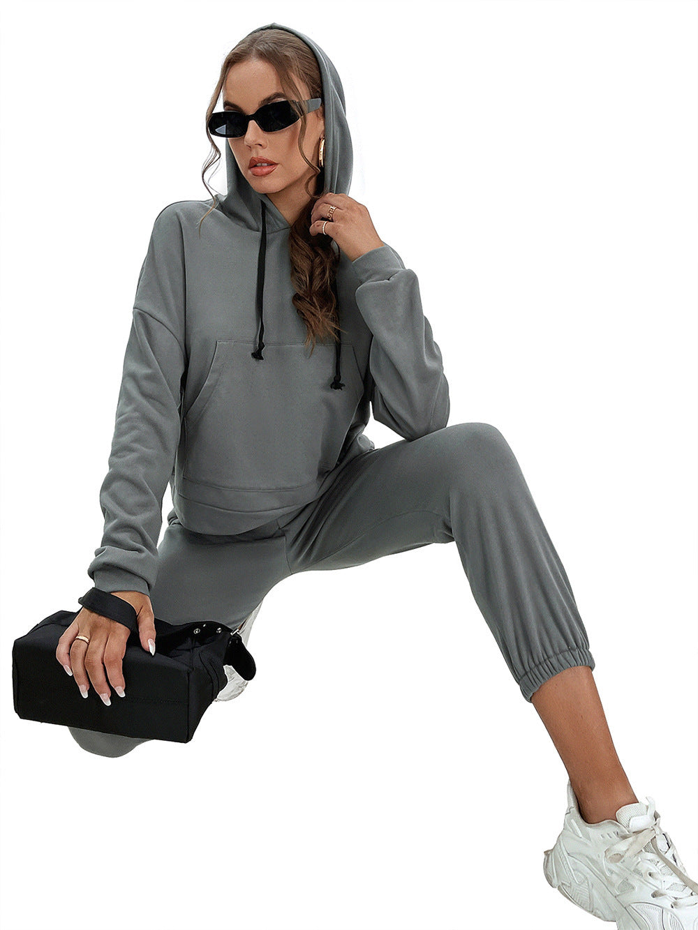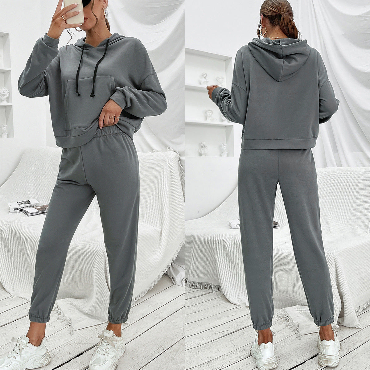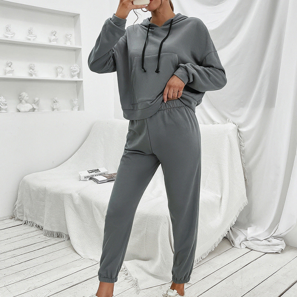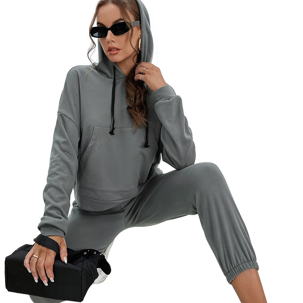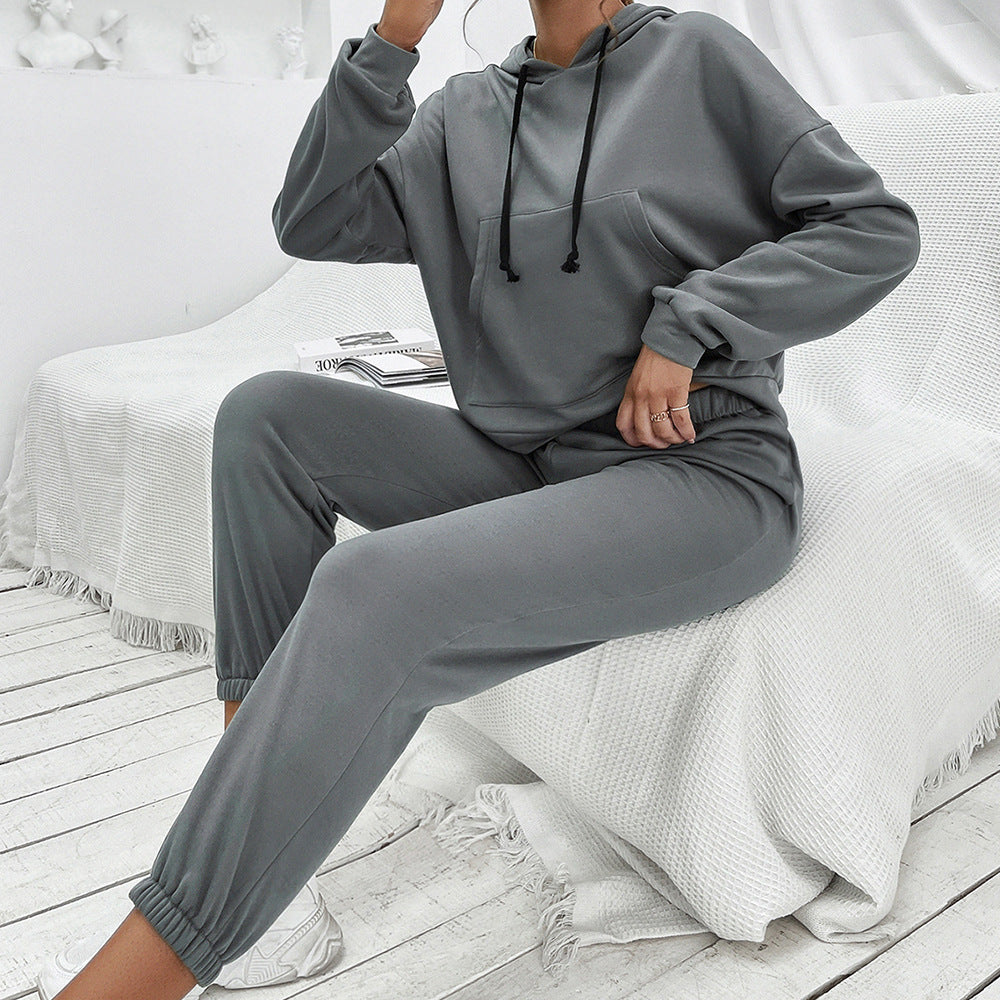 Loose Casual Solid Color Hooded Sweater Outdoor Sports Suit