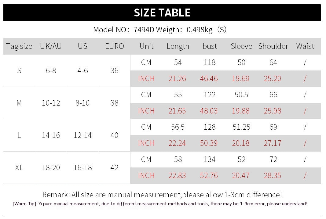 1. Asian sizes are 1 to 2 sizes smaller than European and American people. Choose the larger size if your size between two sizes. Please allow 2-3cm differences due to manual measurement. 2. Please check the size chart carefully before you buy the item, if you don't know how to choose size, please contact our customer service. 3.As you know, the different computers display colors differently, the color of the actual item may vary slightly from the following images.