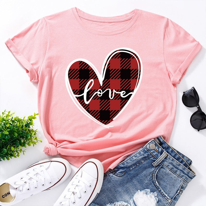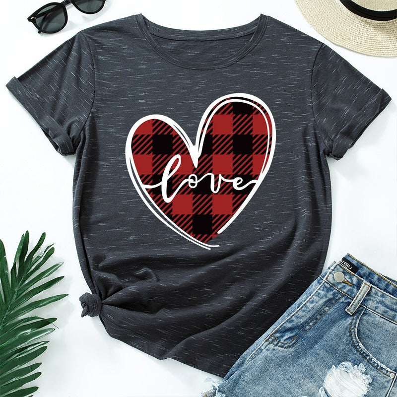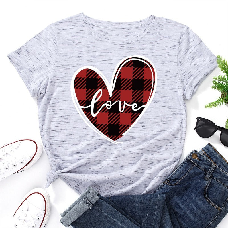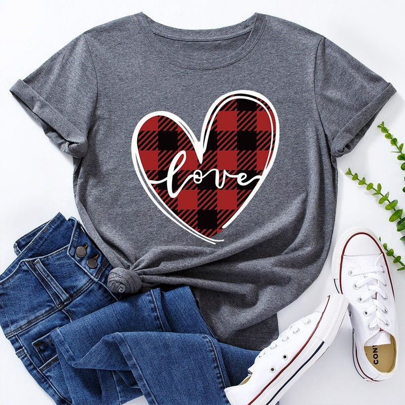 Love Print Loose Round Neck Short Sleeve T-shirt Women