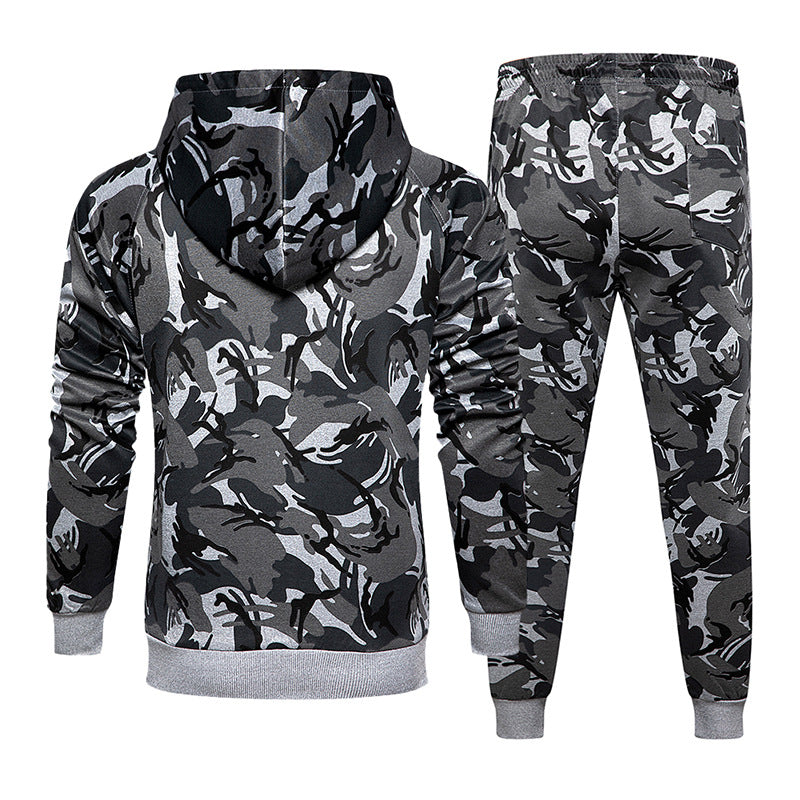 Men's hooded camouflage sportswear two-piece suit