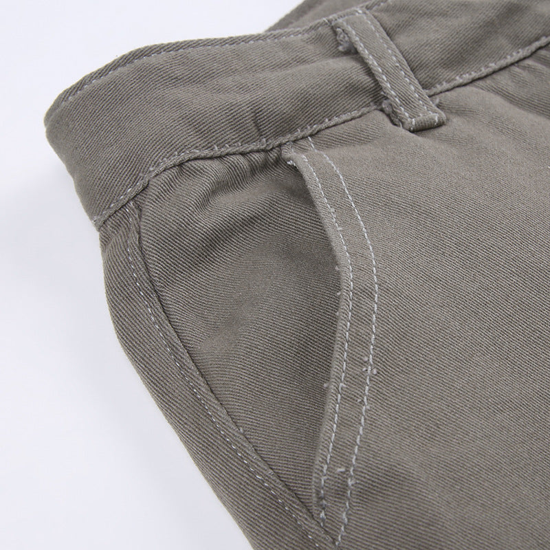 Multi-pocket Gray Straight Loose Jeans Look Slim For Women