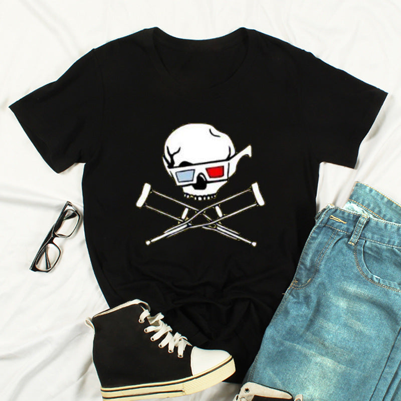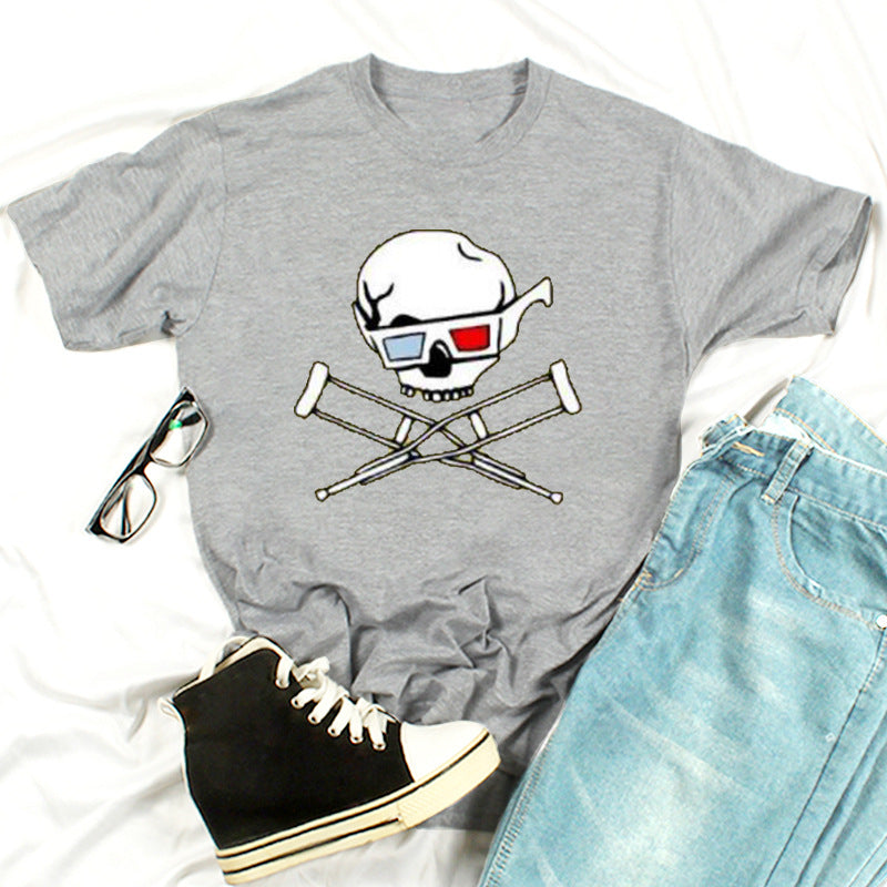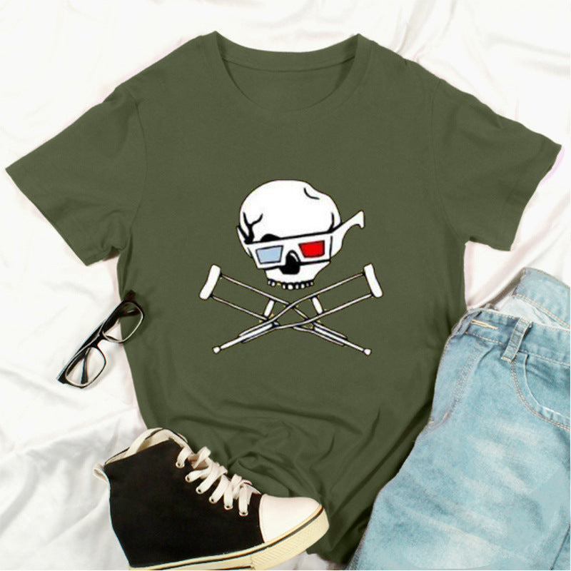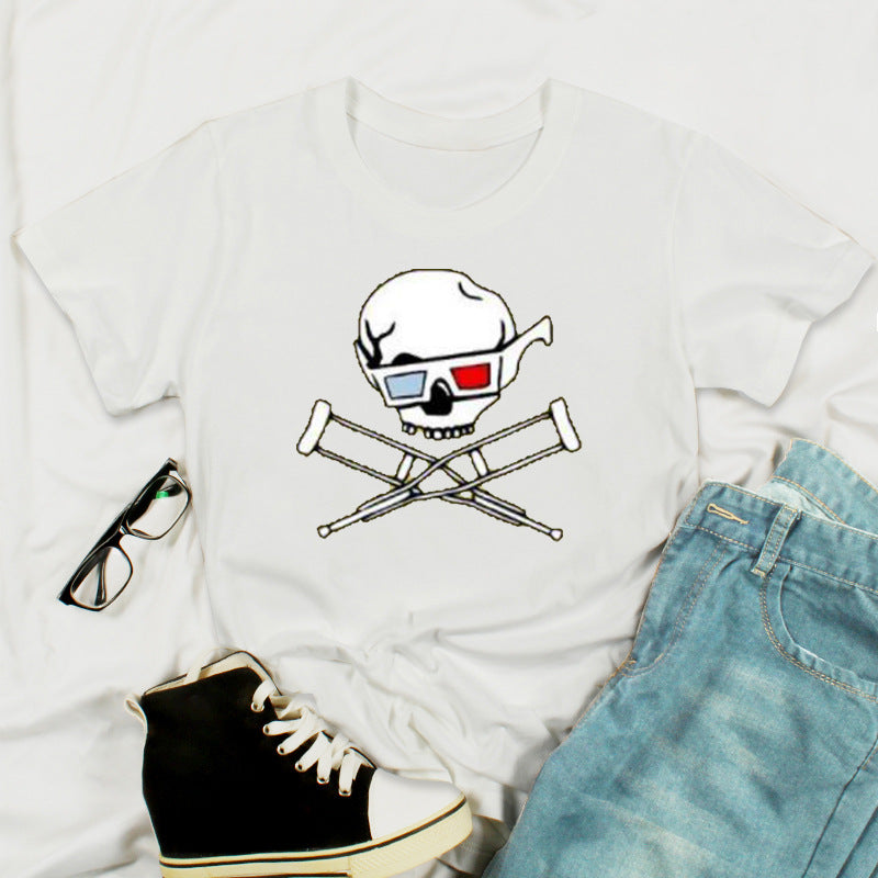 Skull Print Fashion Short-Sleeved T-Shirt