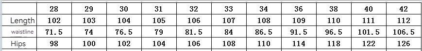 Size: 29, 30, 31, 32, 33, 34, 36, 38, 40, 42