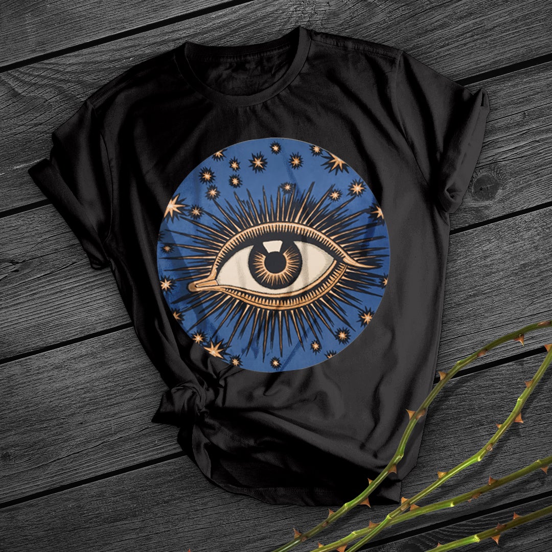 Psychedelic Eyes Black Women's Print Short Sleeves