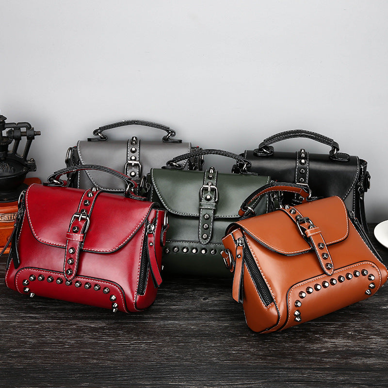 Retro oil leather rivet handbags