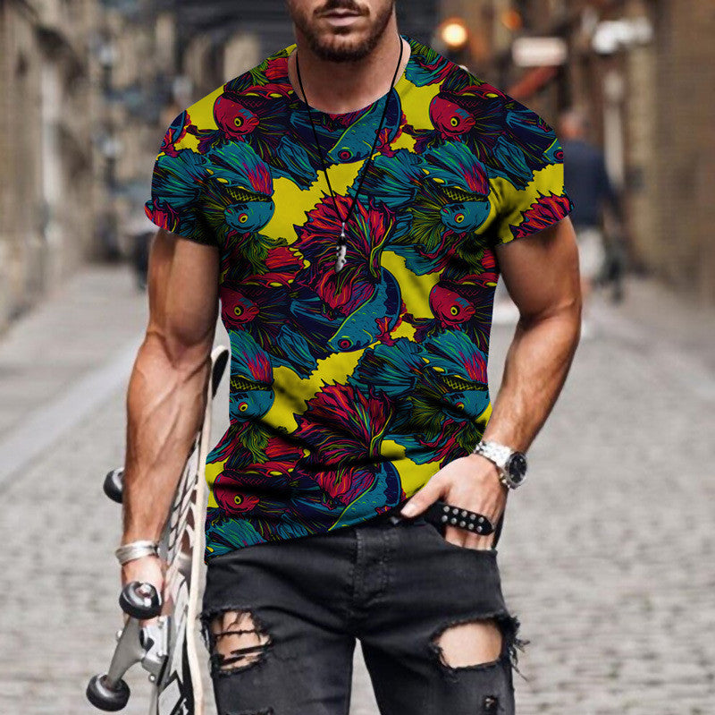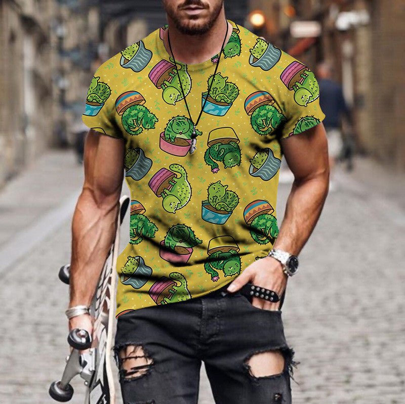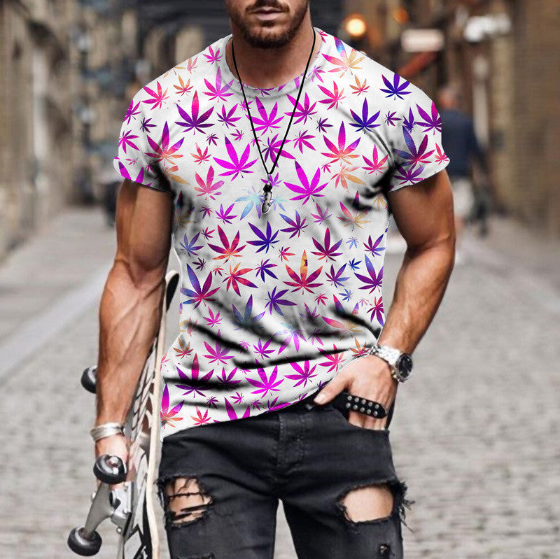 Round Neck 3D Plant Print Short-sleeved T-shirt