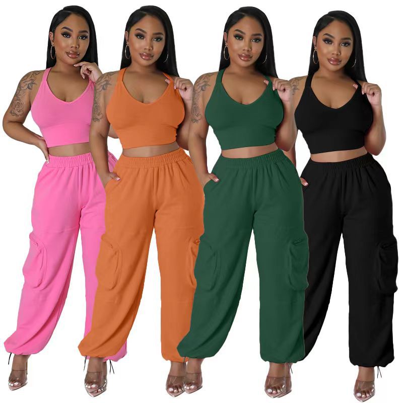 Sleeveless Vest Pocket Wide Leg Pants Casual Women's Two-piece Suit