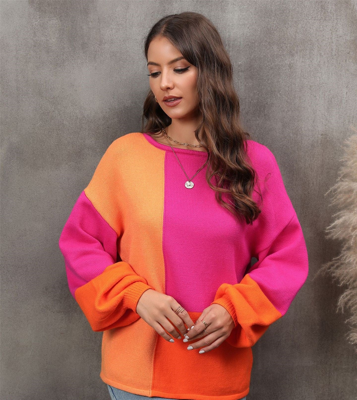 Stitching Fashion Personalized Knitted Loose Pullover