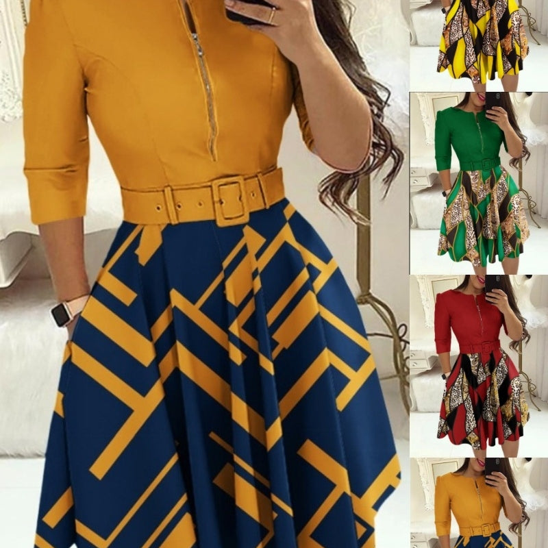 Stylish Temperament Long Sleeves Dress Contains Belt