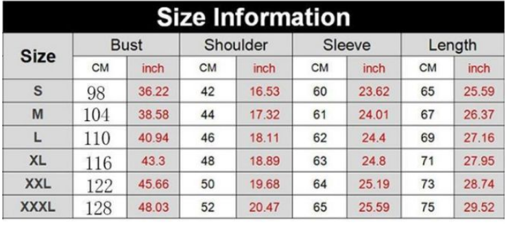 1. Asian sizes are 1 to 2 sizes smaller than European and American people. Choose the larger size if your size between two sizes. Please allow 2-3cm differences due to manual measurement. 2. Please check the size chart carefully before you buy the item, if you don't know how to choose size, please contact our customer service. 3.As you know, the different computers display colors differently, the color of the actual item may vary slightly from the following images.