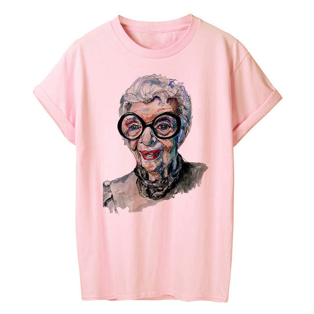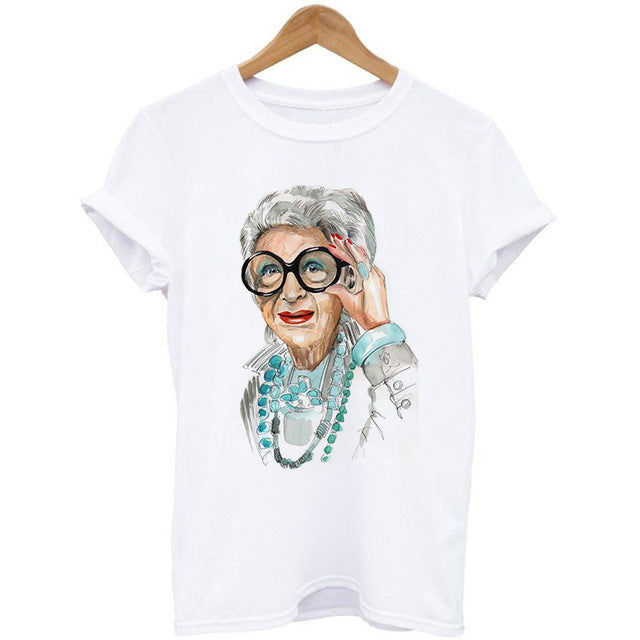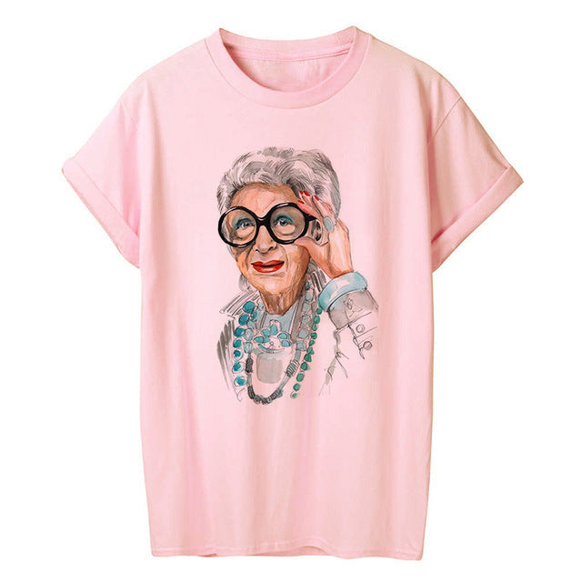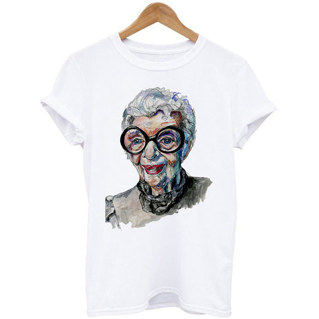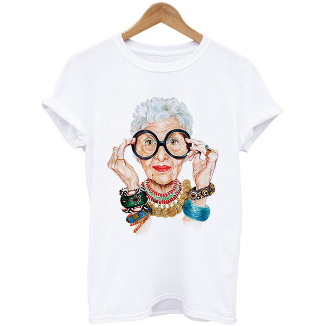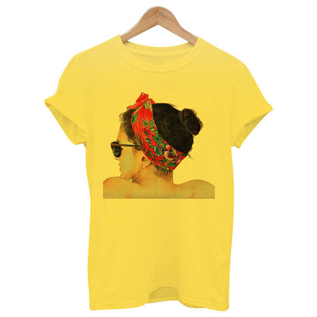 Woman Head Print Short Sleeve Round Neck Short Sleeve T-shirt