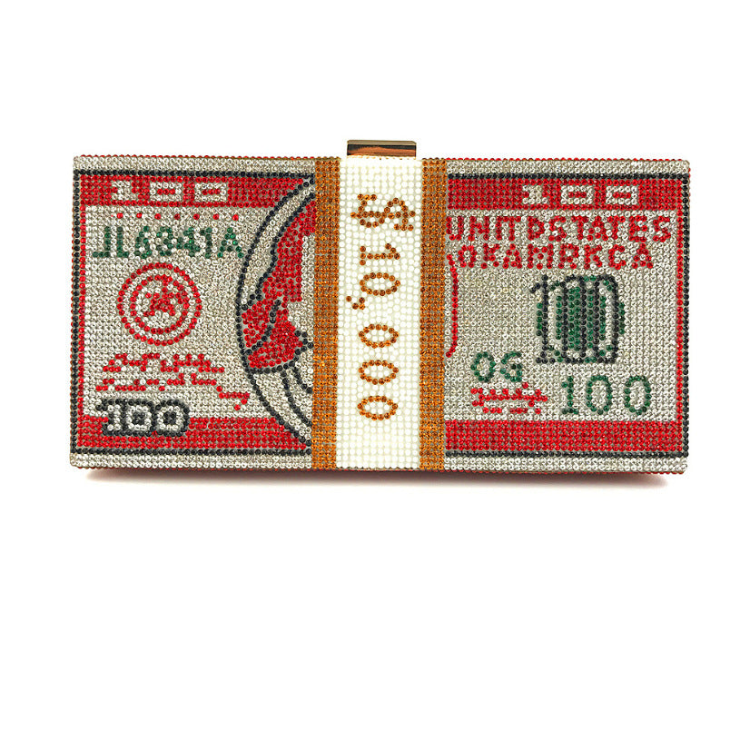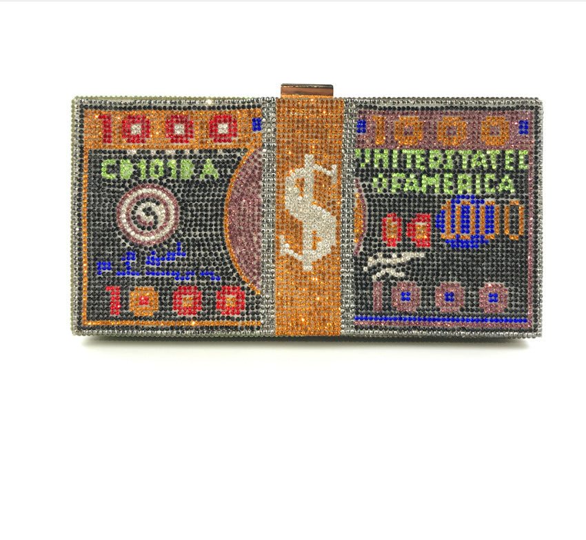 Women Crystal Diamond Cash Dollars Clutch Purses Chain Handbags