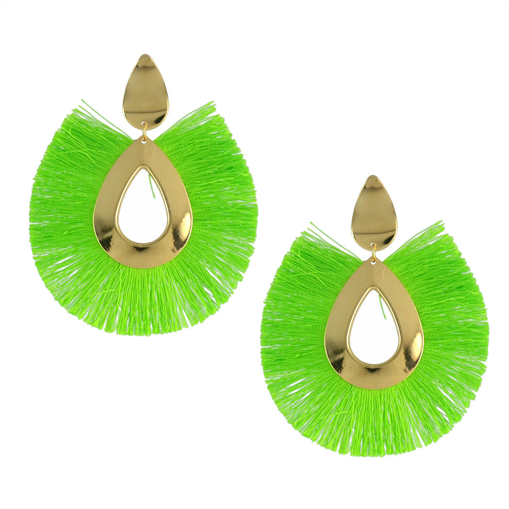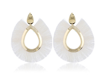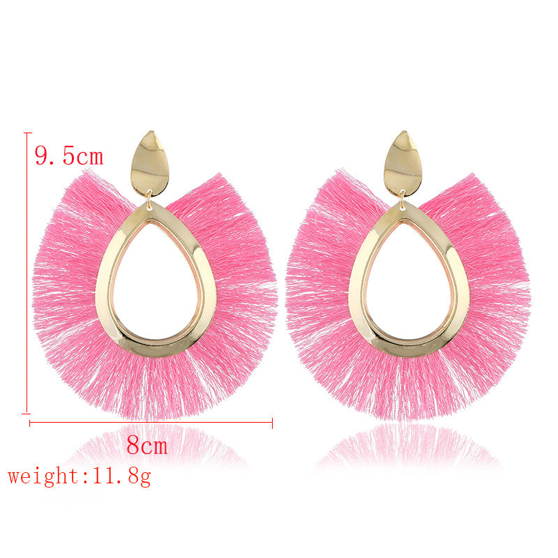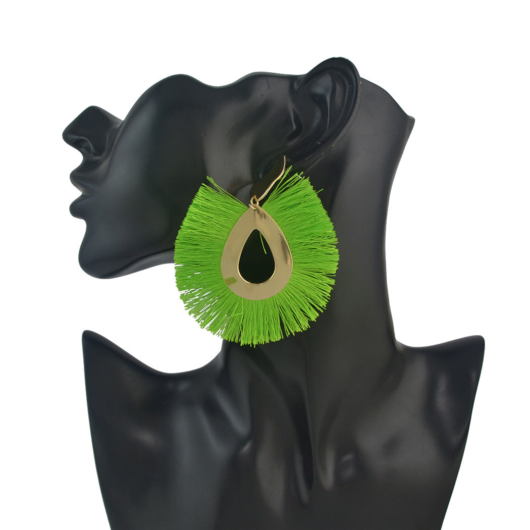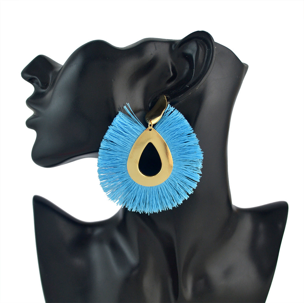 Women Fan-shaped Cotton Tassel Dangle Earring Jewelry