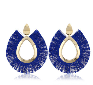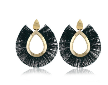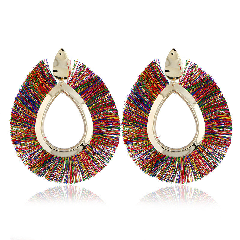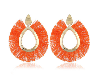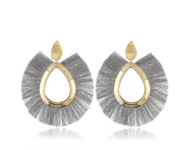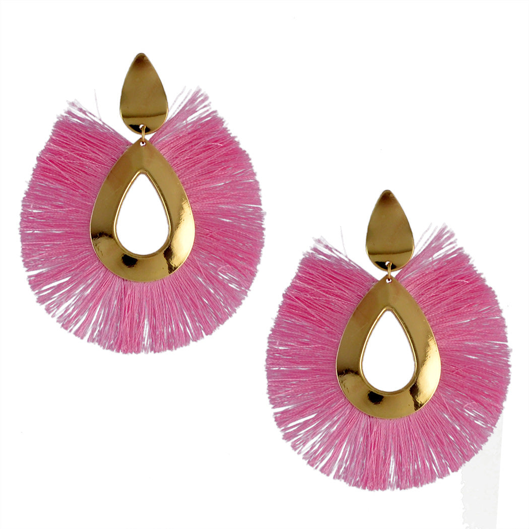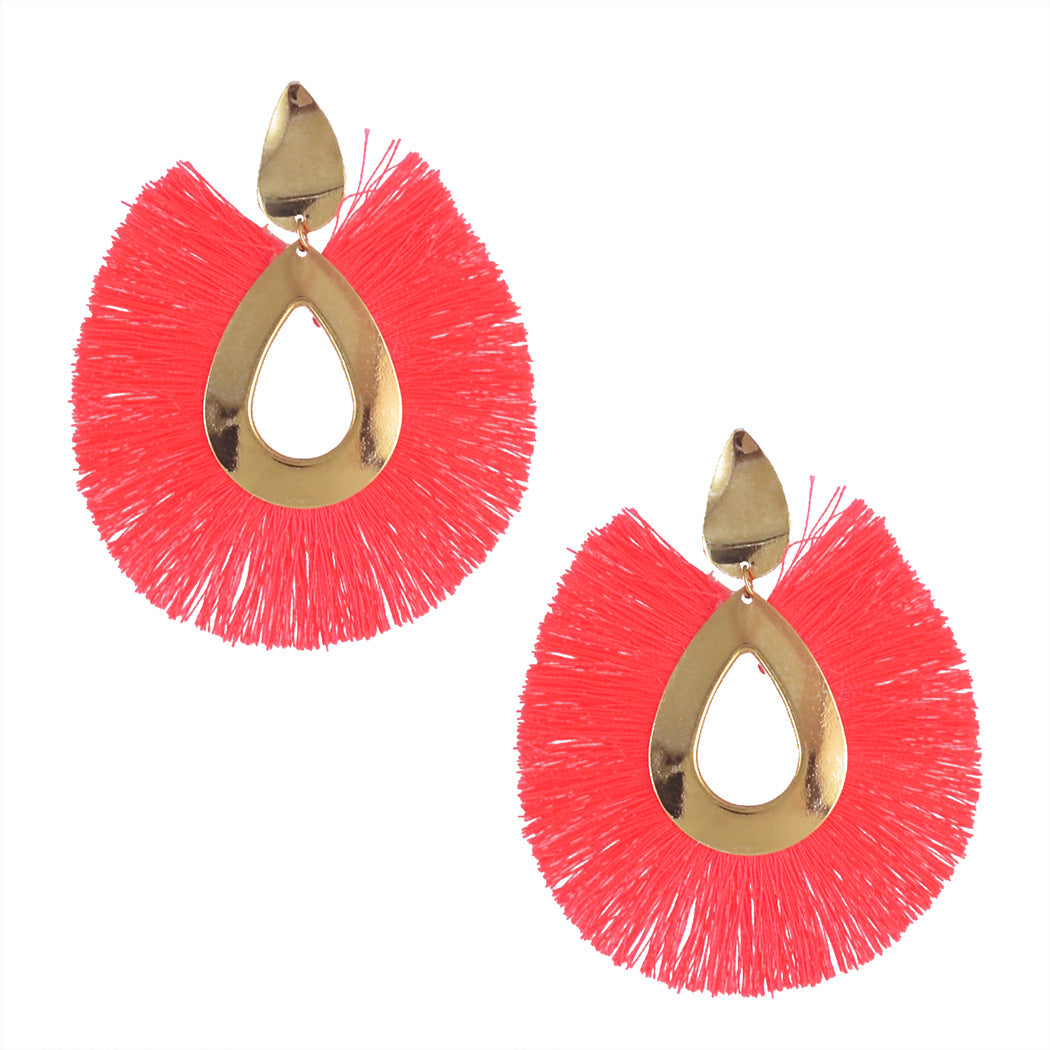 Women Fan-shaped Cotton Tassel Dangle Earring Jewelry