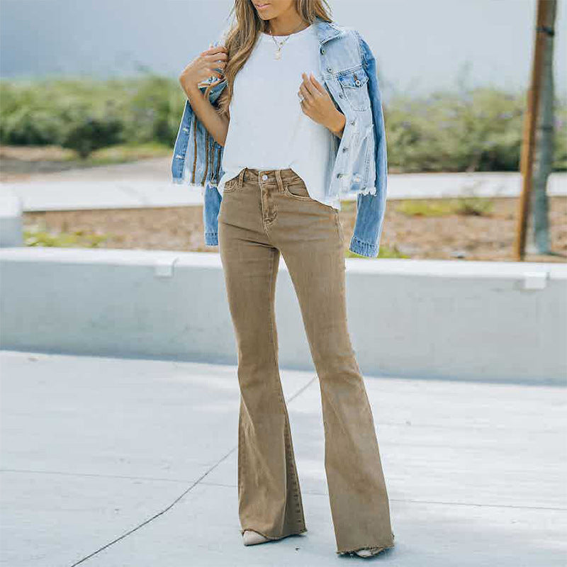 Women's Denim High Waist Mop Retro Flared Pants