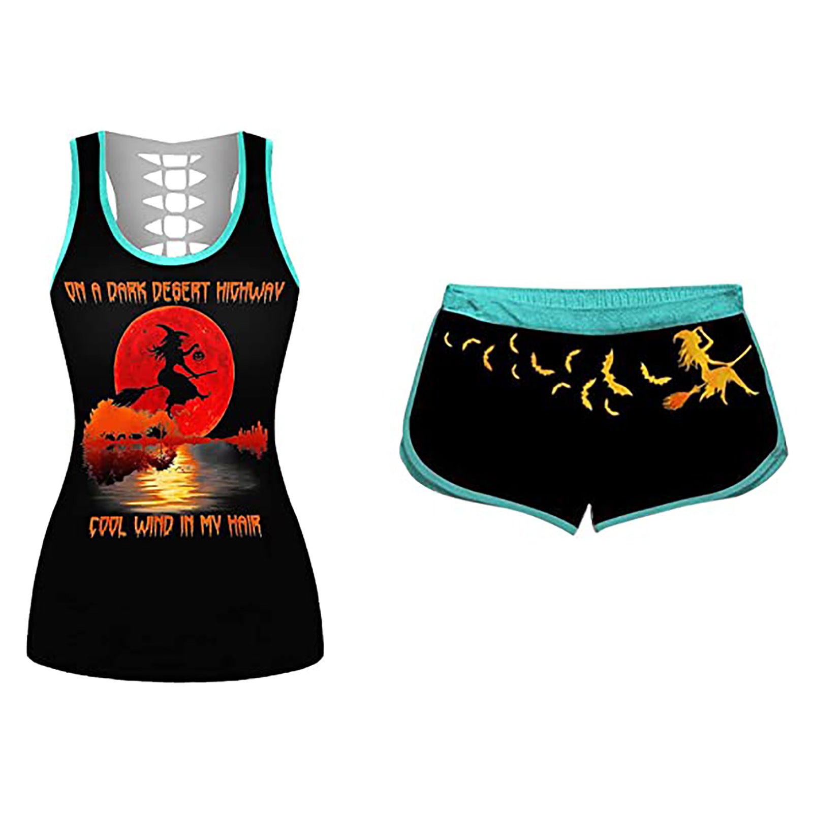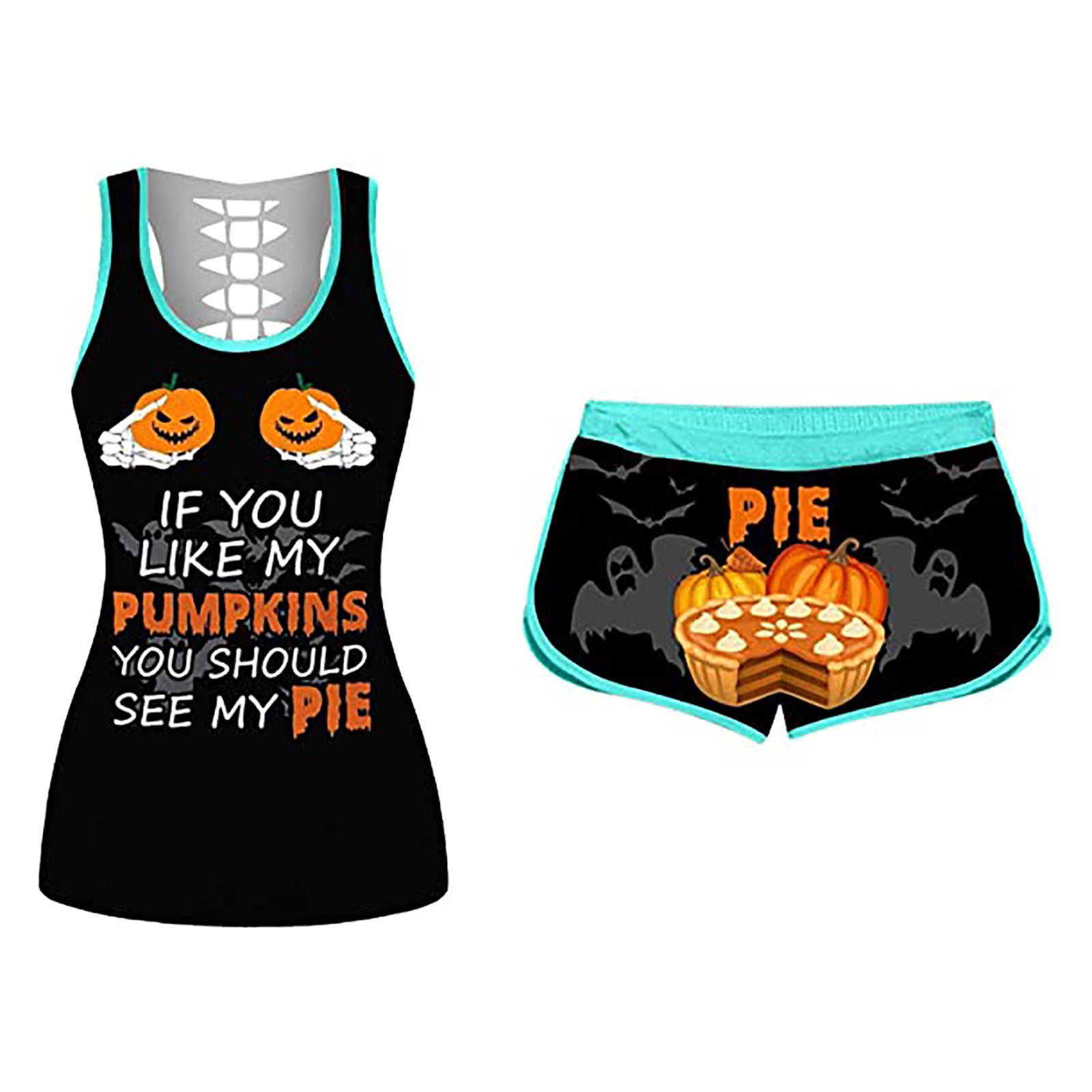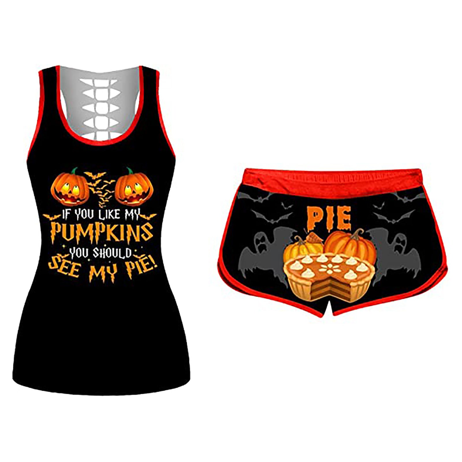 Women's Fashion Halloween Pumpkin Print Sleeveless Tank Top Shorts Suit