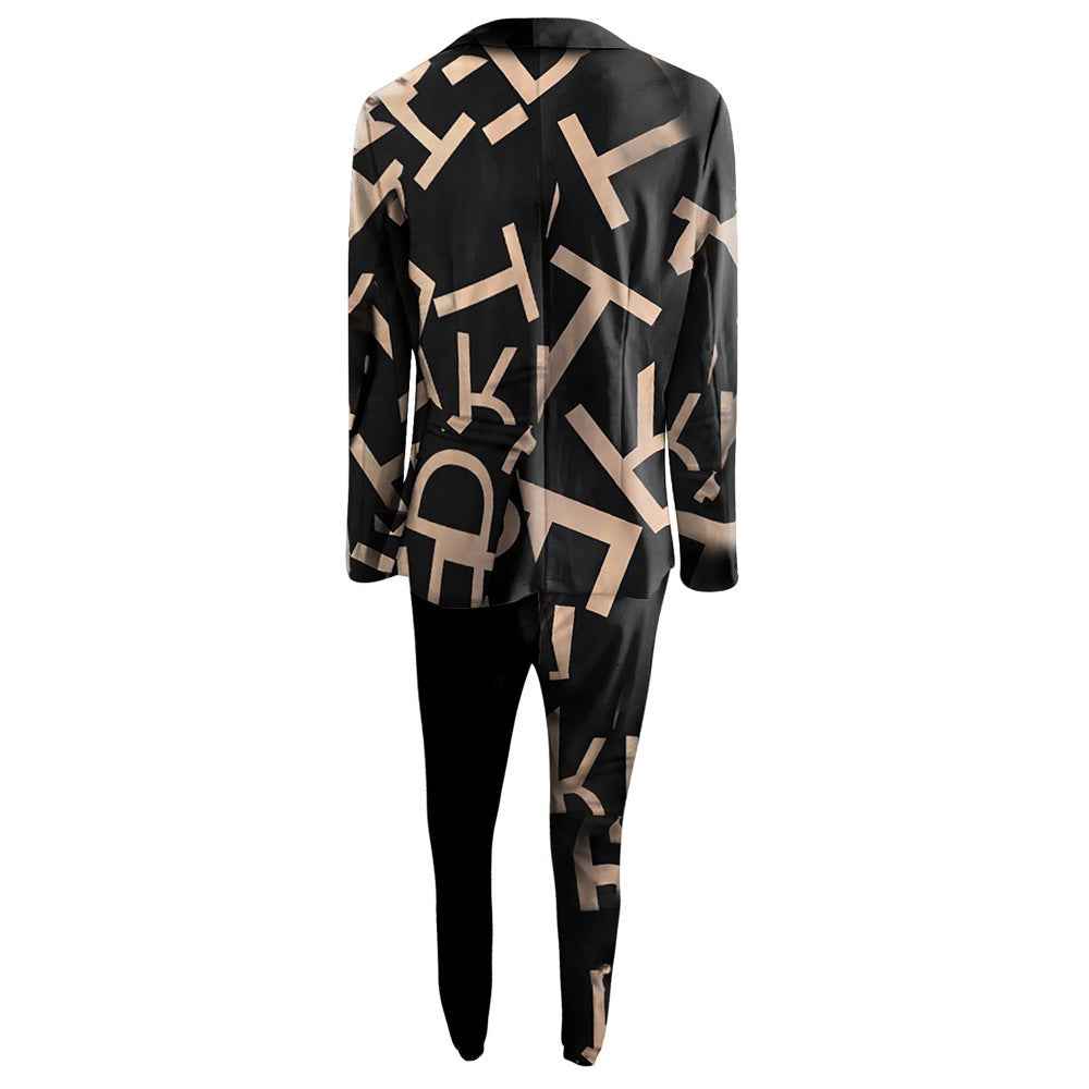 Women's Fashionable Printed Long-sleeved Lapel Casual Suit