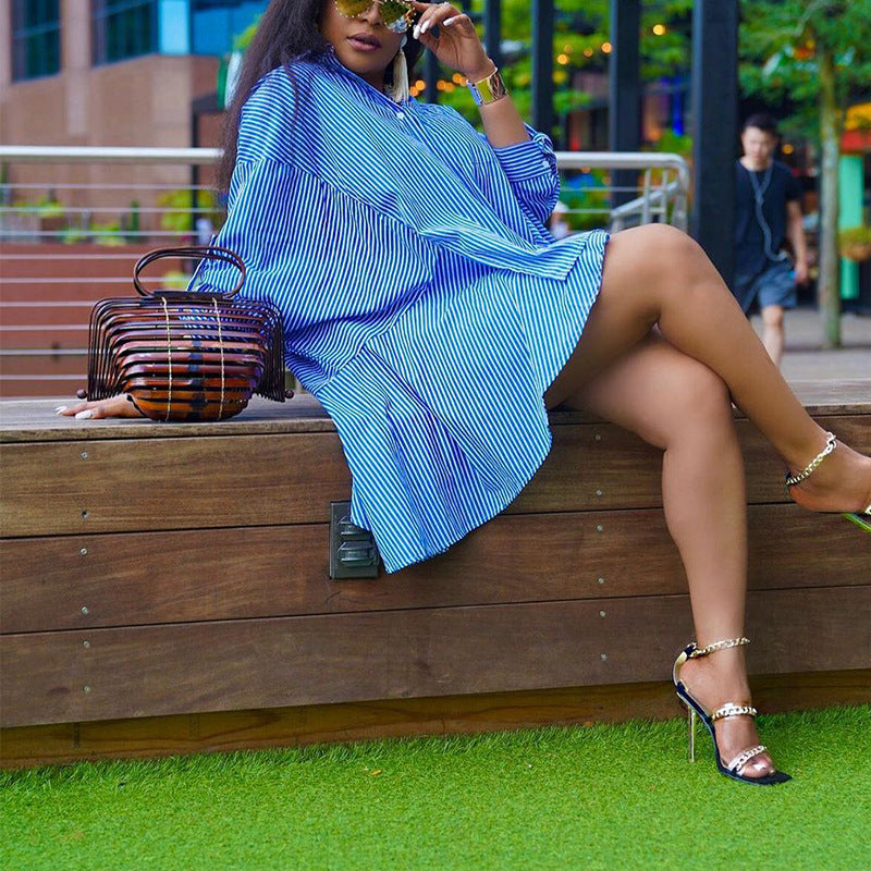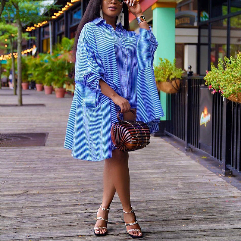Women's Loose Striped Shirt Dress