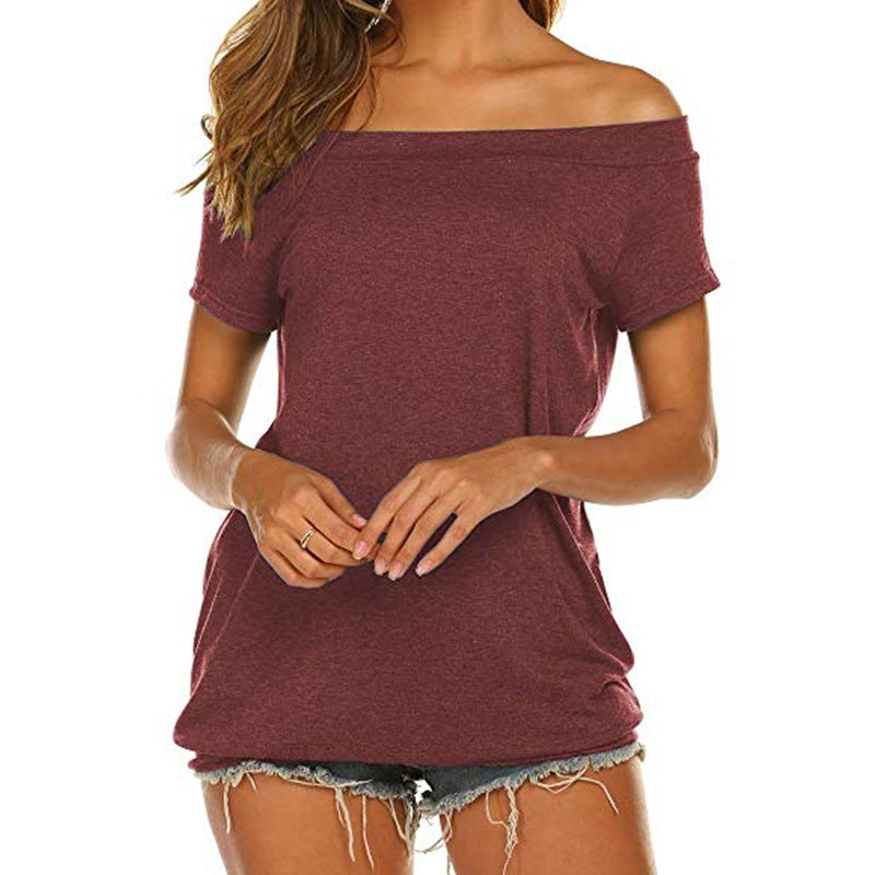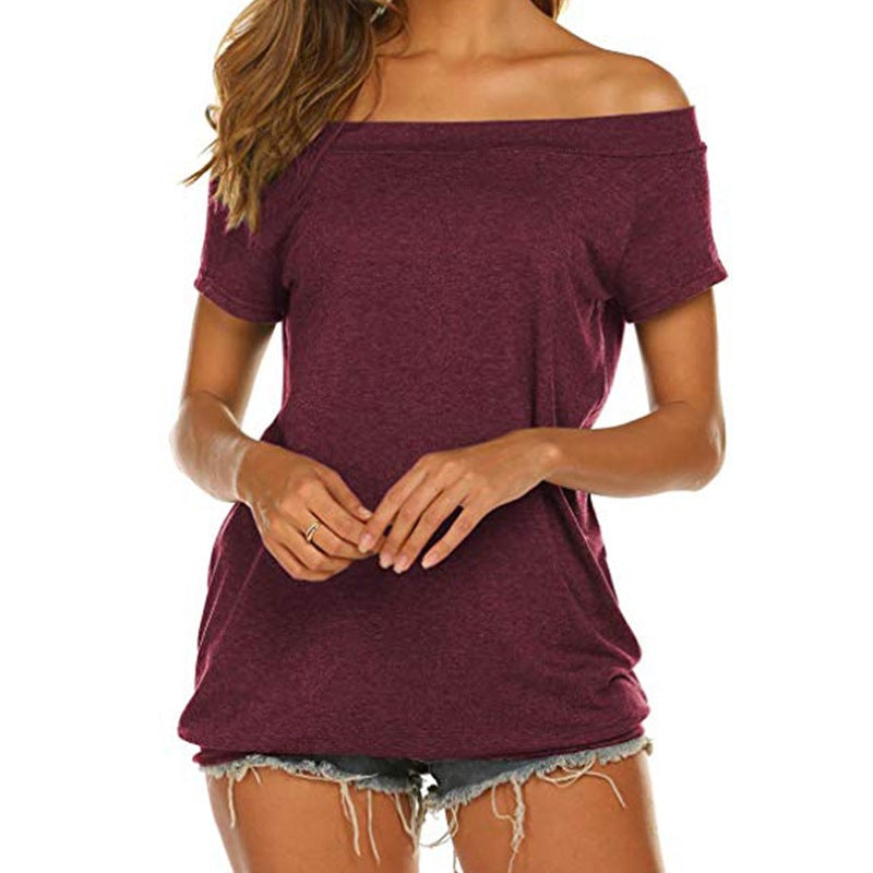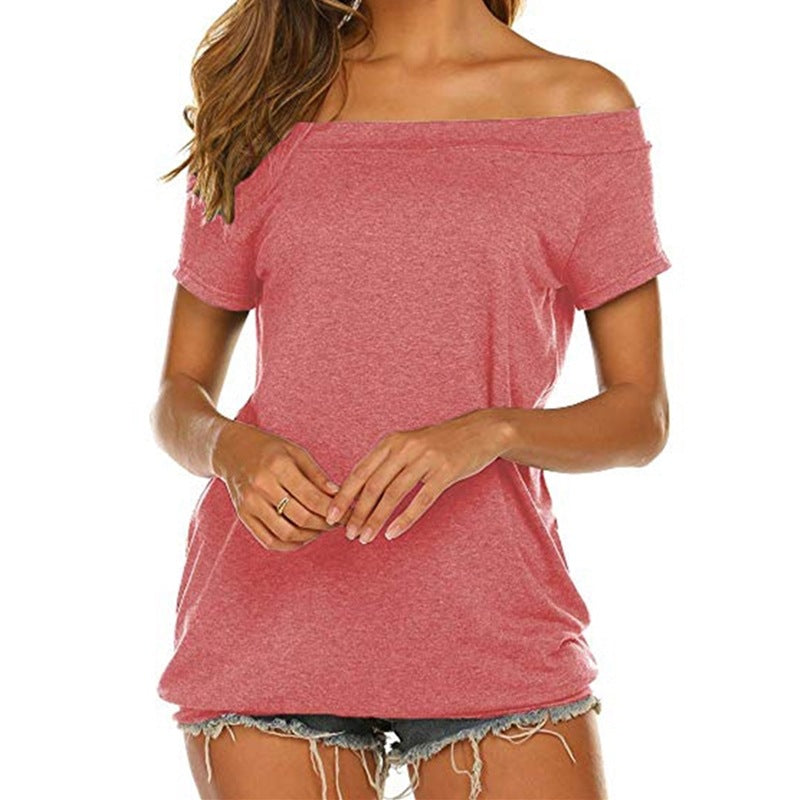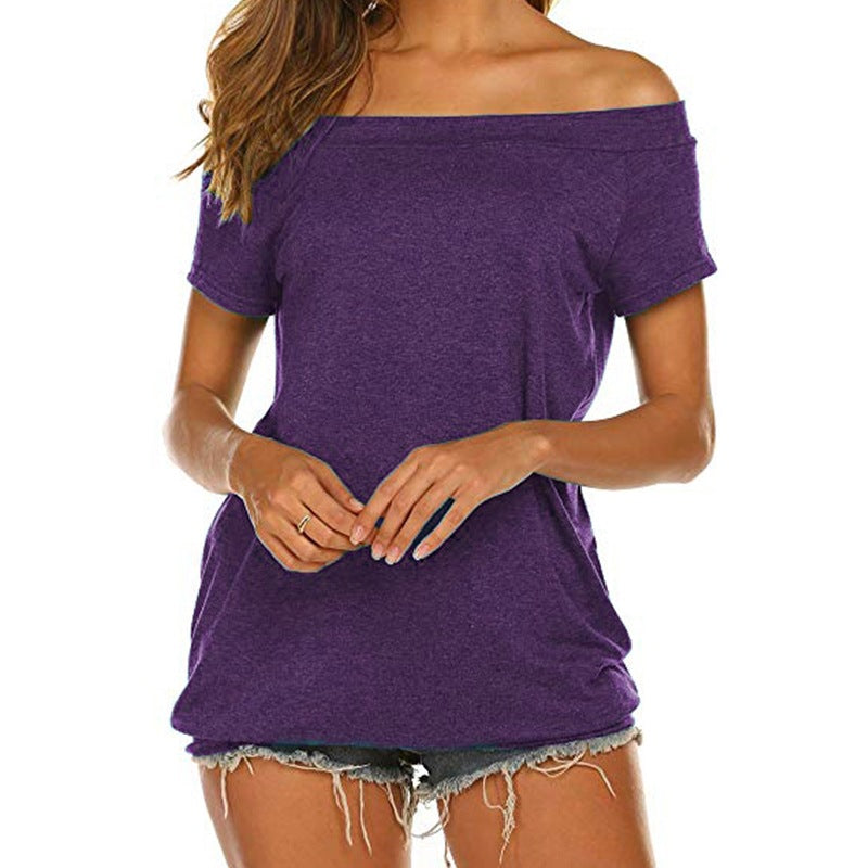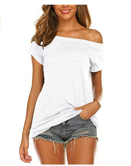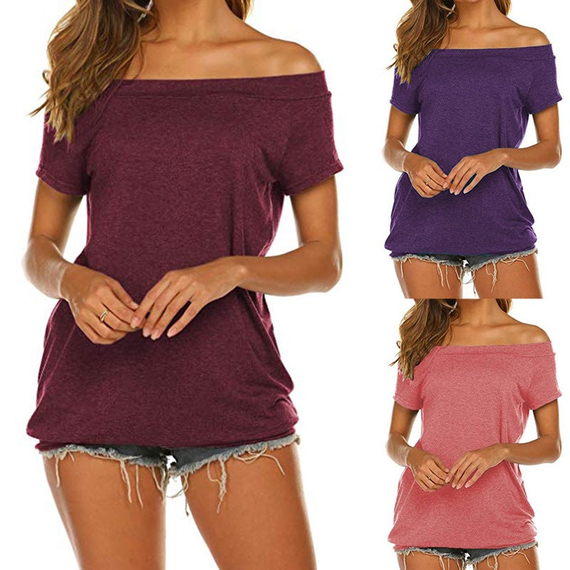Women's Pullover Solid Color Short Sleeve Off-the-shoulder Loose-fitting Casual T-shirt